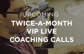 The Live VIP Coaching Calls happen on the second and fourth Tuesday of every month at 12 PM PST